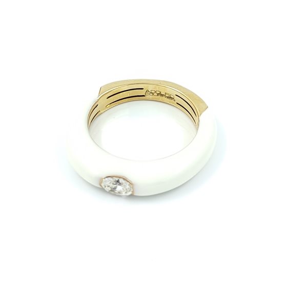 Anello Adolfo Courrier in Oro Giallo 18kt con Smalto Bianco, con Diamante Centrale Ovale 0.25ct