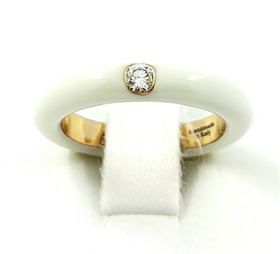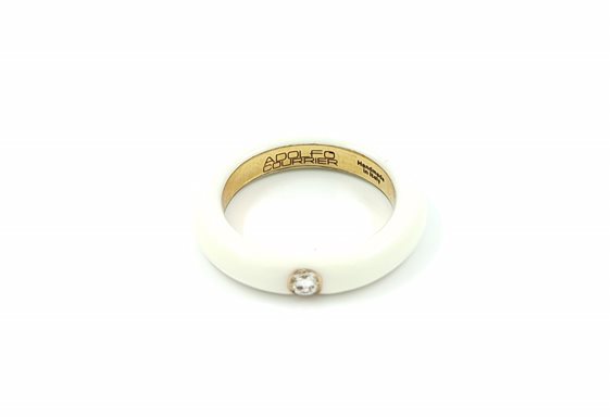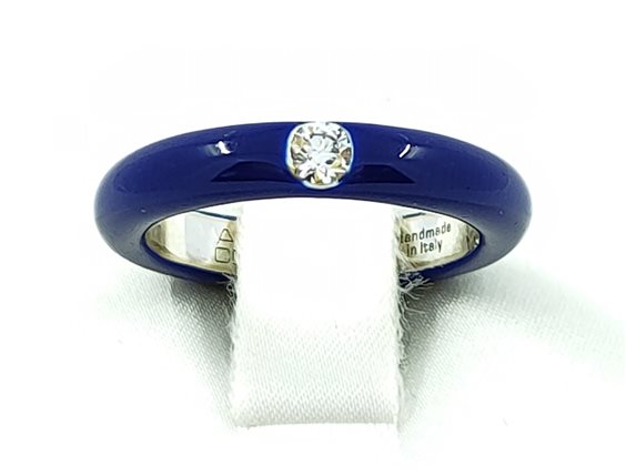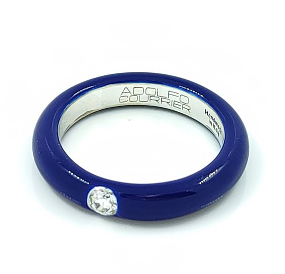 Anello Adolfo Courrier Collezione Jeans in Oro Bianco 18kt, Colore Blu Smaltato, con Diamante Centrale 0.11ct Si può ottenere anche in Oro Rosa 18kt, con Colore Bianco Smaltato, con Diamante Centrale 0.11ct.