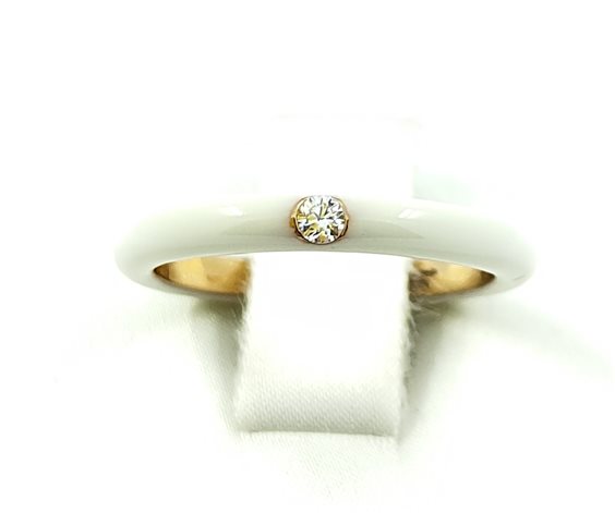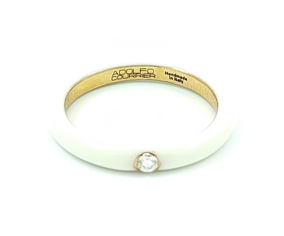 Anello Adolfo Courrier in Oro Rosa 18kt di Colore Bianco Smaltato, con Diamanti 0.5ct