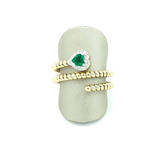 Anello oro giallo 18kt con smeraldo a forma di cuore ct.28 e contorno di diamanti taglio brillante ct.0.12