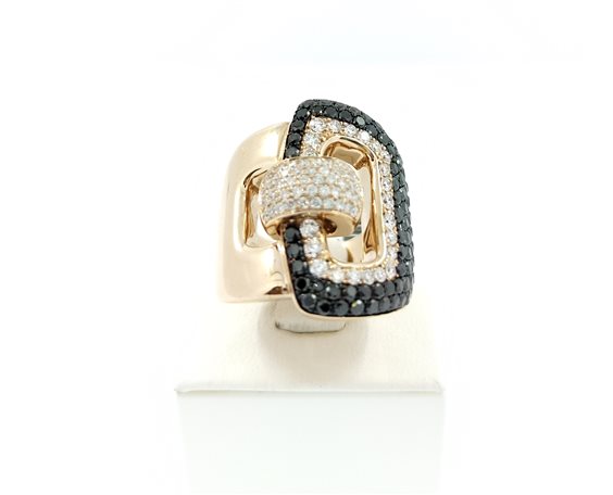Anello Artigianale in Oro Rosa 18kt con Diamanti Neri 1.59ct e Diamanti Bianchi a taglio brillante 0.82ct.