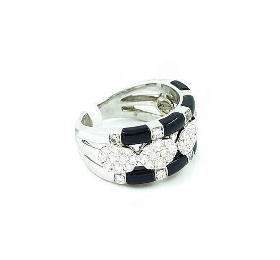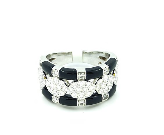 Anello di creazione artigianale, in Oro Bianco 18kt. con inserti in ceramica nera e Diamanti a taglio brillante 1.26ct.