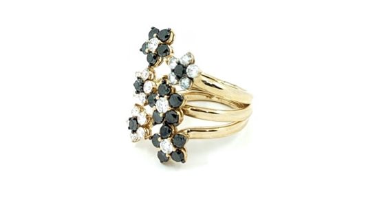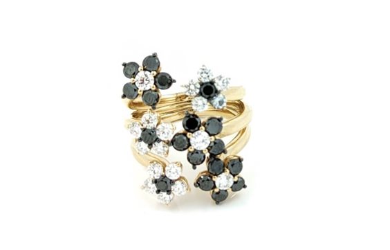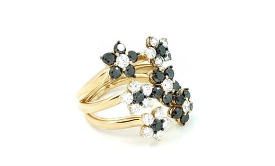 Anello di creazione Artigianale Preziosi Sangiorgi, in Oro Rosa 18kt. con fiori in Diamanti Bianchi 1.28ct e Diamanti Neri 1.94ct.