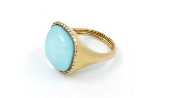 Anello Artigianale in Oro Rosa 18kt. con Doppietta di Turchese e Cristallo di Rocca, con Diamanti a taglio brillante 0.18ct.