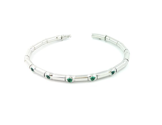 Bracciale di creazione artigianale in Oro Bianco 18kt. con 5 Smeraldi a cornice.