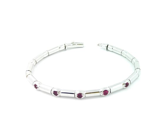 Bracciale di Creazione Artigianale in Oro Bianco 18kt. con 5 Rubini a Cornice.