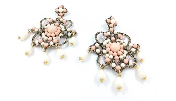 Orecchini Artigianali in Chiacchierino, Agata Bianca e pasta di corallo rosa.