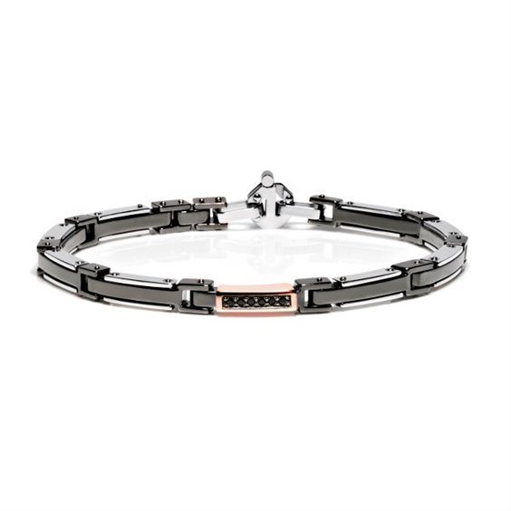 Bracciale della collezione Barakà Explore da uomo. Colore: nero, oro rosa e Acciaio. Bracciale in acciaio inossidabile 316L e oro rosa 750‰ (18kt), realizzato con finitura in PVD nero, dettaglio centrale in oro rosa e diamanti naturali neri di caratura 0,09. La chiusura a moschettone è impreziosita con un diamante naturale bianco di caratura 0,02. I gioielli Barakà sono realizzati artigianalmente da maestri orafi italiani per l’uomo che ama il lusso. L'unicità dello stile Barakà . Collezione: Explore Materiale: Acciaio Colore: Multicolor Carati materiale: 750 Pietra principale: Diamante Tipo Bracciale: Catena