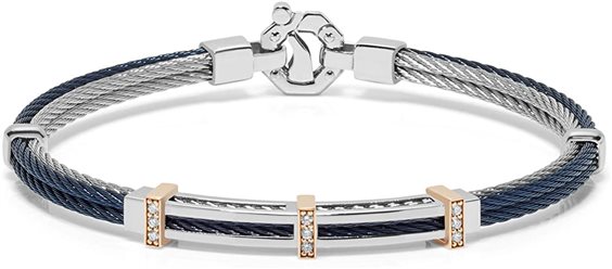 BRACCIALE ORO ROEè 750. ACCIAIO. PVD BLU. DIMANTI BIANCHI P.ct 16