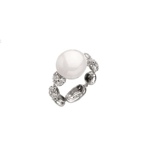 Anello in oro bianco, diamanti (0.8 ct) e corallo bianco.