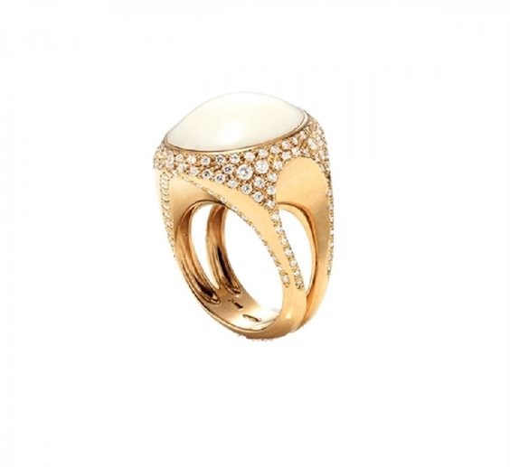 Anello oro Rosa e Spola in Corallo Bianco.