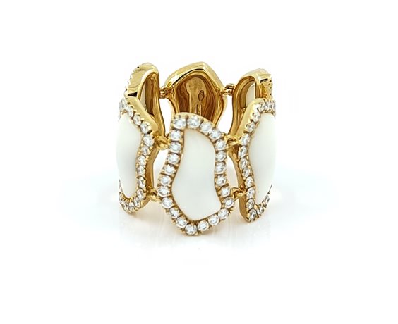 Anello a fascia in oro rosa, cinque elementi in Kogolong e diamanti.