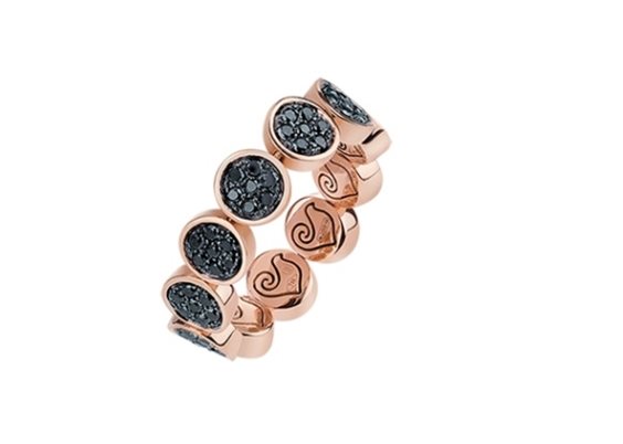 Anello fascia Paillettes in oro rosa 18Kt e diamanti neri.