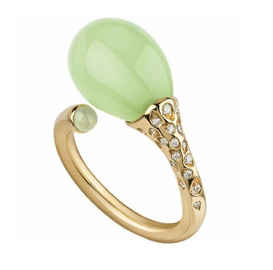 Anello Chantecler Collezione Joyful in Oro Giallo 18Kt, Diamanti E Poire In Cristallo Color Verde Mela. Composizione Oro Gr 5,00 Ktdiamante Ct 0,14 Nr 23Quarzo Gr 2,64.