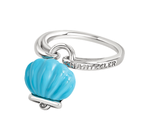 Anello Et Voilà Campanella Capriness piccola, in argento e bioresina color turchese scolpita a mano con un diamante taglio brillante. Argento GR 4,35 Diamante CT 0,01 NR 1 Resina GR 0,35 NR 1