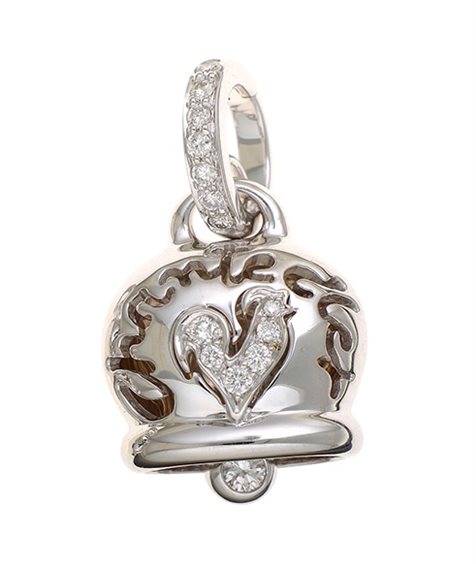 Ciondolo campanella piccola in oro bianco e gallo pavè