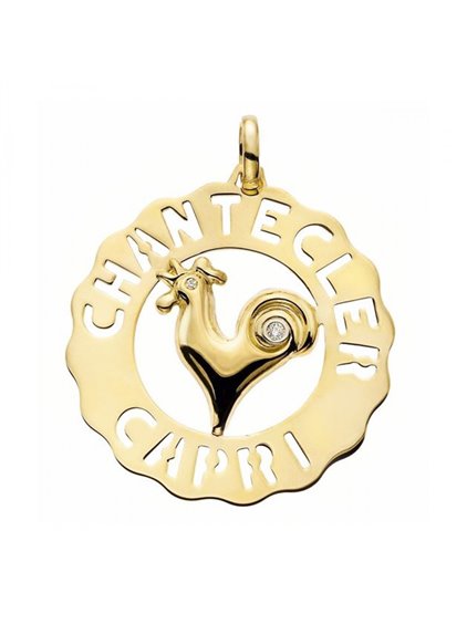 Ciondolo grande Gallo in oro giallo e diamanti.