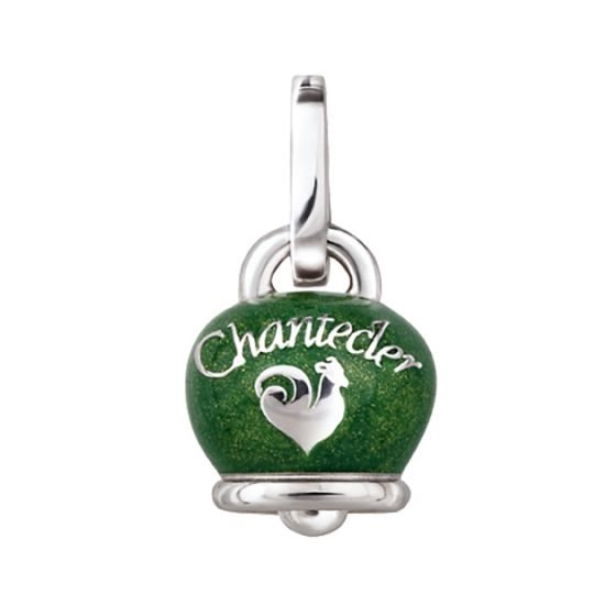 Ciondolo medio Campanella double face in argento e smalto verde perlato, con quadrifoglio sul retro.