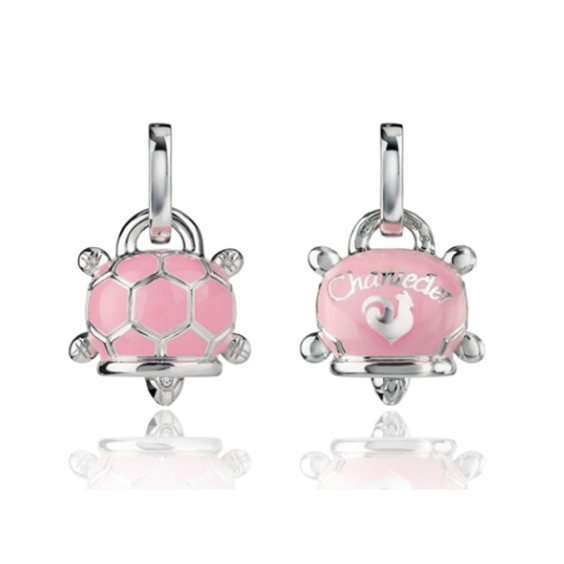 Ciondolo tartaruga piccolo in argento, smalto rosa e diamante bianco