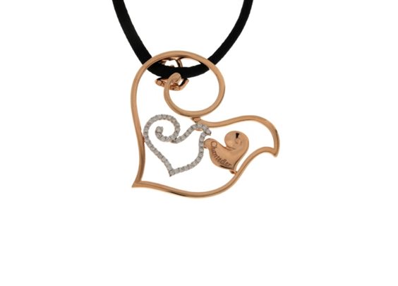 Collana Chantecler collezione Diamour & Folies in Oro Rosa 18Kt e tessuto. Prestigioso ciondolo Chantecler in oro rosa 18 kt e diamanti taglio brillante, proveniente dalla collezione Diamour.