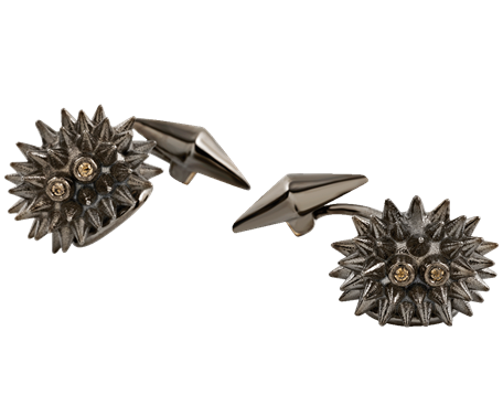 Gemelli Et Voilà Campanella Riccio piccoli in argento brunito con quattro diamanti brown taglio brillante. Composizione Argento GR 10,30 Diamante CT 0,04 NR 4