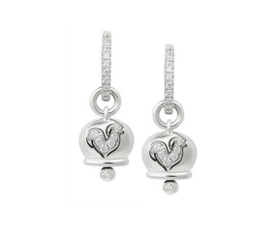 Coppia Mono Orecchino campanella gallo micro in oro bianco con diamanti.