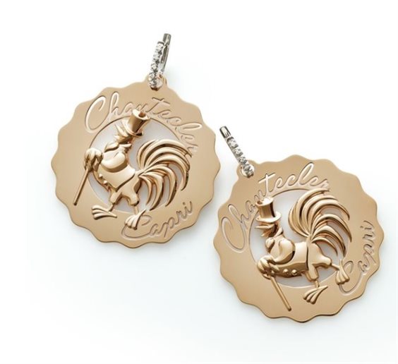 Coppia di Mono Orecchino Logo Gallo dandy in oro rosa 9 KT e diamanti