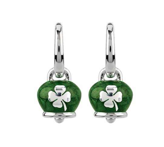 Coppia Mono Orecchino campanella micro quadrifogli in argento e smalto verde perlato