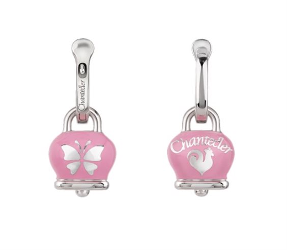 Coppia Mono Orecchino Et Voilà Campanella piccoli in argento e smalto rosa intenso con farfalla sul retro
