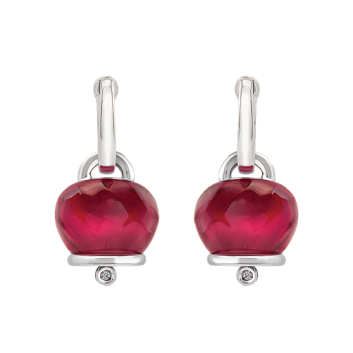 DESCRIZIONE Orecchini Et Voilà Campanella medi in argento, resina sfaccettata a mano color borgogna e due diamanti COMPOSIZIONE Argento GR 9,40 Diamante CT 0,02 NR 2 Resina GR 1,80 NR 2