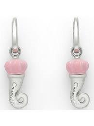 Orecchini con cornetto in argento e testa in smalto rosa.