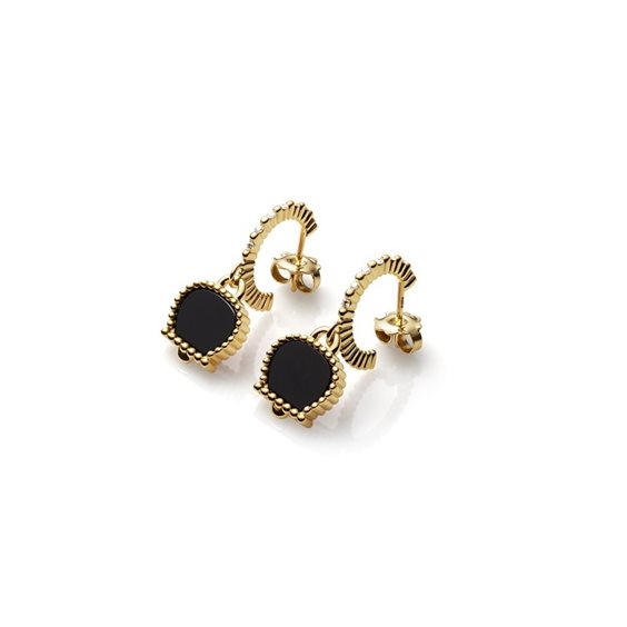 Orecchini cerchio piccolo in oro giallo e diamanti, campanella piccola in Onice.
