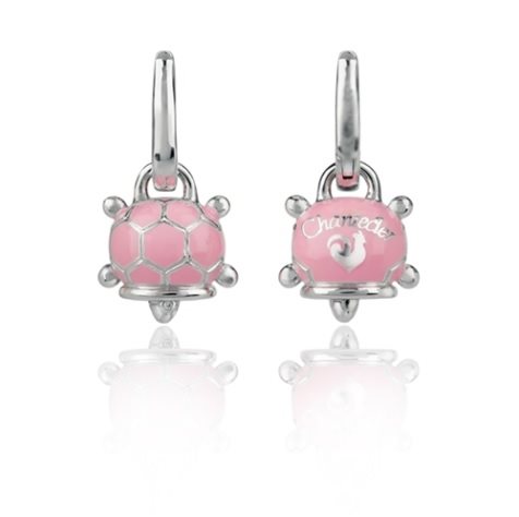Coppia di Orecchini Et Voilà tartaruga micro in argento, smalto rosa e diamante bianco.