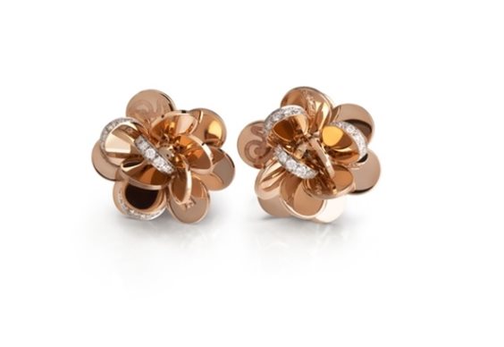 Orecchini Paillettes fiore medio in oro rosa 18Kt e diamanti.