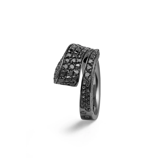 Anello LIKE REGULAR in oro brunito con pavé di diamanti neri disposti per tutta la lunghezza del gioiello.