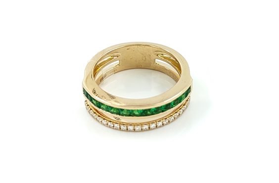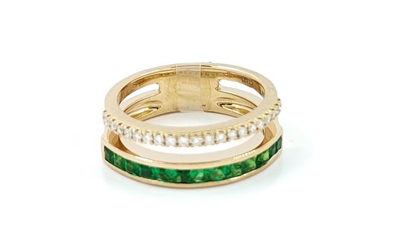 Anello Crivelli in Oro Rosa 18kt. con Diamanti a taglio brillante 0.16ct e Smeraldi 0.60ct.