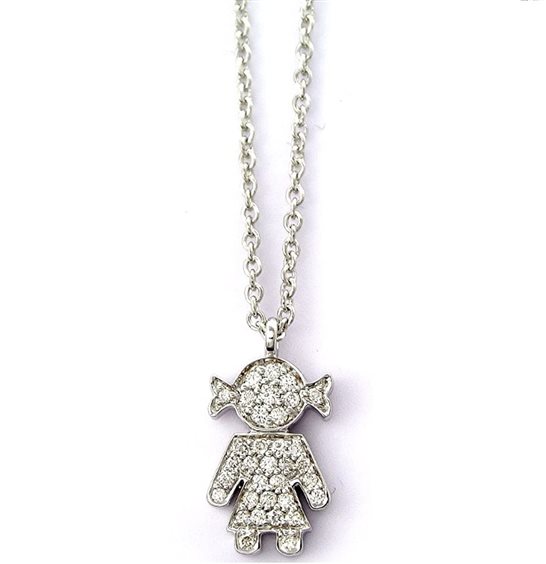 Catenina con pendente in Oro Bianco, Collezione Easy con Diamanti naturali a taglio brillante di colore G vs. ct 0.20