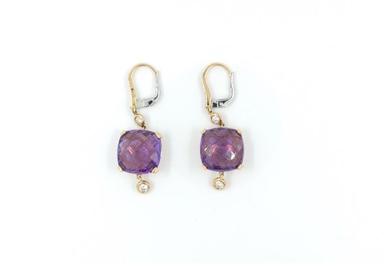 Coppia di Orecchini Pasquale Bruni in Oro Rosa 18Kt. con Diamanti a taglio brillante e centrale in Ametista.