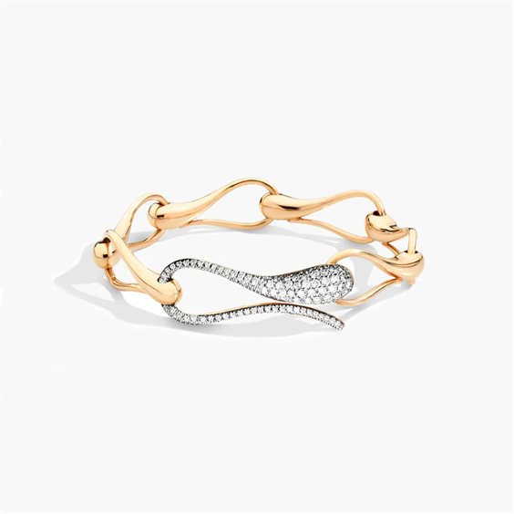 È il seme della foglia dell’acero che ispira la collezione Elika: ne deriva un modulo elegante e sinuoso, estremamente contemporaneo. Il bracciale della collezione è in Oro Rosa e Oro Bianco 18k impreziosito da un elemento lungo 5 cm in Diamanti. La chiusura, invisibile, è nascosta in un modulo che si apre così da non interrompere il movimento fluido degli elementi che si rincorrono. Materiale: Oro rosa e oro bianco 18k Pietre preziose: Diamanti 0.55 ct Collezioni: Elika