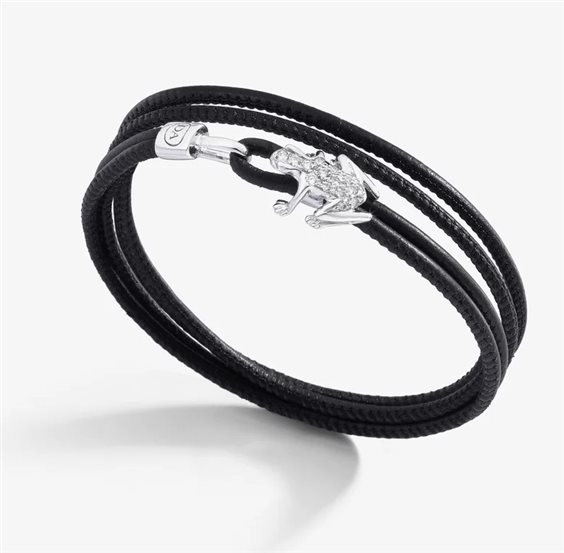 La rana è la protagonista assoluta dell'iconica collezione Happy Frog, creata nel 1994. Nel bracciale in pelle la preziosità della Frog in oro bianco 18k con diamanti si contrappone al materiale più organico. Una combinazione che conferisce al gioiello un design contemporaneo ed un carattere deciso, per avere sempre con sé la preziosa fortuna. Il bracciale si avvolge sul polso e la chiusura è ad amo. Codice prodotto: DHF12BRBBDIXN Materiale: Oro bianco 18k Pietre preziose: Diamanti 0.22 ct Altri materiali: Pelle vitello diametro 2 Collezioni: Happy Frog
