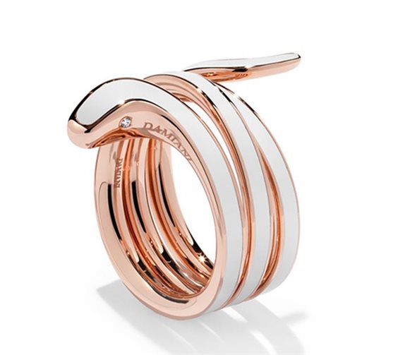 Anello Damiani "Serpente Eden" in Oro Rosa e Diamante Carati 0,01 a Taglio Brillante e ceramica.