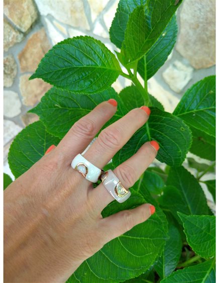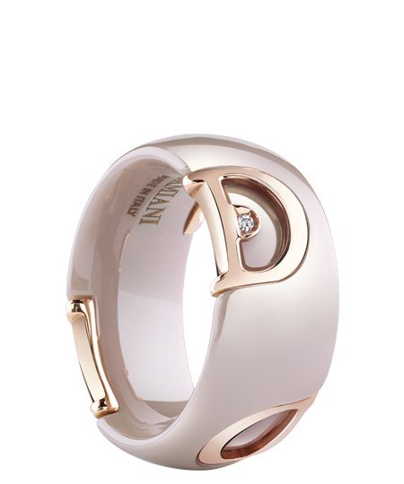 Anello Damiani con Diamante, Collazione D.ICON in Ceramica di colore Cappuccino e Logo "D" in Oro Rosa, misura Anello 13.