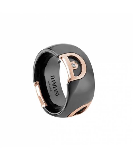 Anello in Ceramica di colore nero con 4 "D" Logo Damiani, e un Diamante a Taglio Brillante 0.01 ct.