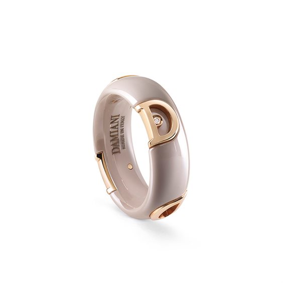 Anello Damiani collezione D.icon in Ceramica di colore Cappuccino con 4 D in Oro Rosa 18kt, e Diamante a taglio brillante 0.07ct. Misura 13-7mm