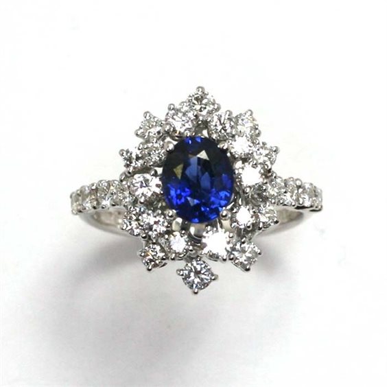 Anello Damiani in Oro Bianco 18kt. con centrale in Zaffiro 0.74ct. e cornice di diamanti 1.04 ct.