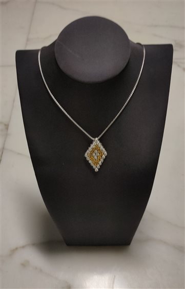 Collana in Oro Bianco Damiani con pendente intarsiato di Diamanti 0.38ct, misura collana 45cm.
