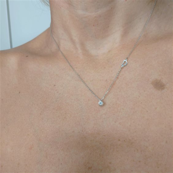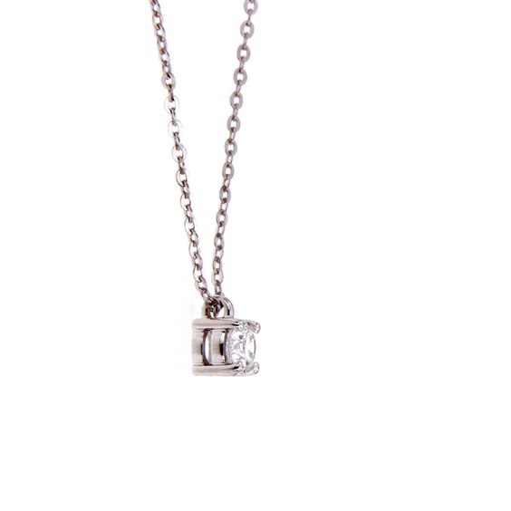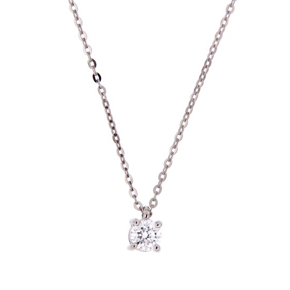 L’eleganza e il fascino della luce racchiusa in un gioiello. Collier e orecchini punto luce, tre pietre, verette e bracciali tennis sono i gioielli proposti da Damiani nella collezione Luce che celebra la lucentezza del diamante. Con la sua montatura a quattro griffe, la linea Luce rappresenta un classico intramontabile della gioielleria. Collana solitario in oro bianco 18ct con diamante taglio brillante ct 0.24