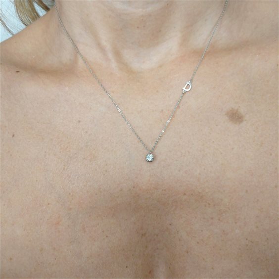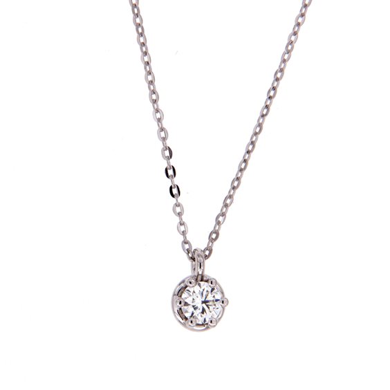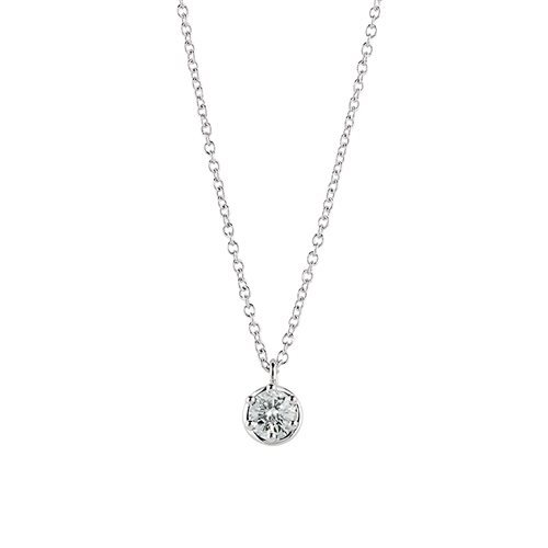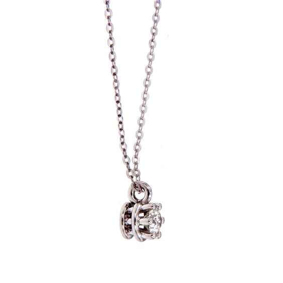 La collezione di gioielli Minou è una collezione classica Damiani in oro bianco o platino e diamanti. Delicato, raffinato ed elegante, il design di questa collezione di gioielli Damiani si riconosce per l’esclusiva montatura “rialzata” del diamante, che enfatizza con assoluta leggerezza lo splendore della pietra. La collezione di gioielli Minou si compone di una gamma di solitari proposti in molteplici carature, collier e orecchini punto luce, anelli, collier e orecchini tre pietre, bracciali tennis, tutti caratterizzati dalla particolare montatura che contraddistingue la collezione e la identifica. Nell’anello solitario il design di questa collezione di gioielli Damiani si “veste” anche con un particolare motivo “a coroncina”, in cui una corona di diamanti cinge la pietra centrale, per un gioiello ancora più prezioso. Minou: gioielli da donna eleganti ed unici, che incantano per la loro classe innata e la loro inimitabile leggerezza. Girocollo punto luce in oro bianco e diamanti ct 0,21GH VVS-VS
