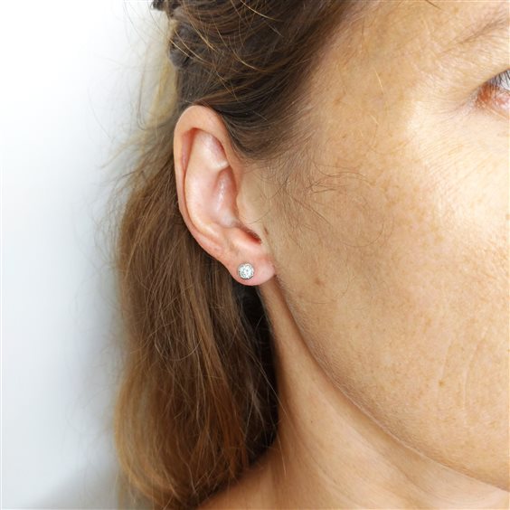 La collezione di gioielli Minou è una collezione classica Damiani in oro bianco o platino e diamanti. Delicato, raffinato ed elegante, il design di questa collezione di gioielli Damiani si riconosce per l’esclusiva montatura “rialzata” del diamante, che enfatizza con assoluta leggerezza lo splendore della pietra. La collezione di gioielli Minou si compone di una gamma di solitari proposti in molteplici carature, collier e orecchini punto luce, anelli, collier e orecchini tre pietre, bracciali tennis, tutti caratterizzati dalla particolare montatura che contraddistingue la collezione e la identifica. Nell’anello solitario il design di questa collezione di gioielli Damiani si “veste” anche con un particolare motivo “a coroncina”, in cui una corona di diamanti cinge la pietra centrale, per un gioiello ancora più prezioso. Minou: gioielli da donna eleganti ed unici, che incantano per la loro classe innata e la loro inimitabile leggerezza.Orecchini in oro bianco con diamante taglio brillante ct 0.5