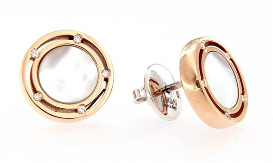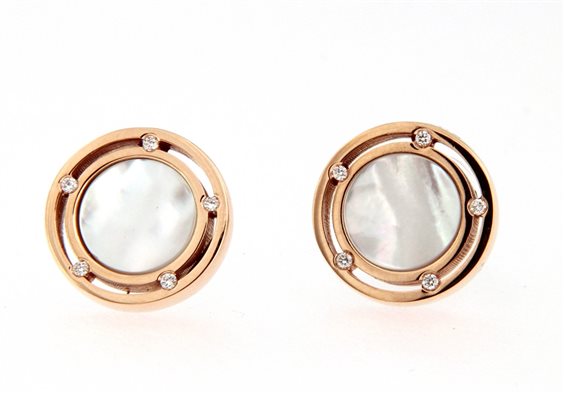 Orecchini D.SIDE in ORO ROSA, MADREPERLA e DIAMANTI ( ct. 0,05 ) Damiani D.SIDE è caratterizzata da uno stile indimenticabile, per chi ama le emozioni e sa vivere intensamente. Il design dei gioielli D.SIDE la perfetta promessa d’amore che unosce due persone e si esprime in due anelli in oro concentrici, ” uniti ” da diamanti taglio a brillante incassati in speciali castoni a mezzaluna per dar vita ad un effetto elegante e prezioso. Una promessa ” per sempre ” affermata con un linguaggio moderno e romantico, scandito dall’oro bianco, giallo e rosa personalizzato da 5 e 8 diamanti per ciascun lato.